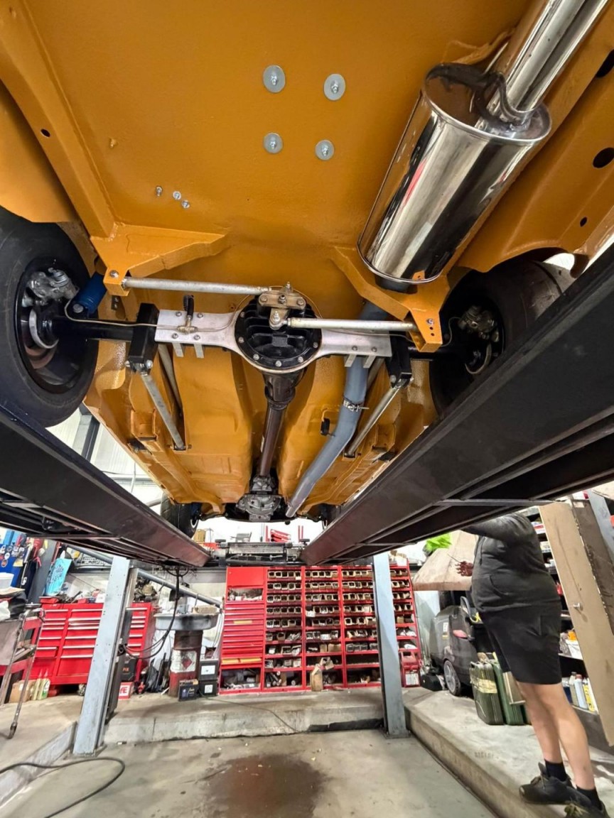 The drivetrain reflects the same considered approach. A rebuilt Cosworth gearbox feeds through a custom propshaft to a fully floating Atlas rear axle, complete with limited-slip differential and uprated half shafts — a proven and robust configuration for this level of performance. Rear disc brakes and a hydraulic handbrake further reinforce the car’s motorsport influence.